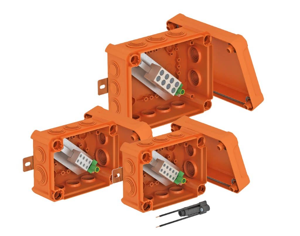 De FireBox is vervaardigd uit halogeenvrije thermoplast met een beschermingsgraad tot IP66 en slagvastheid tot IK10. Binnenin zorgen keramische klemmen (0,5–16 mm²) voor hittebestendige, betrouwbare verbindingen.